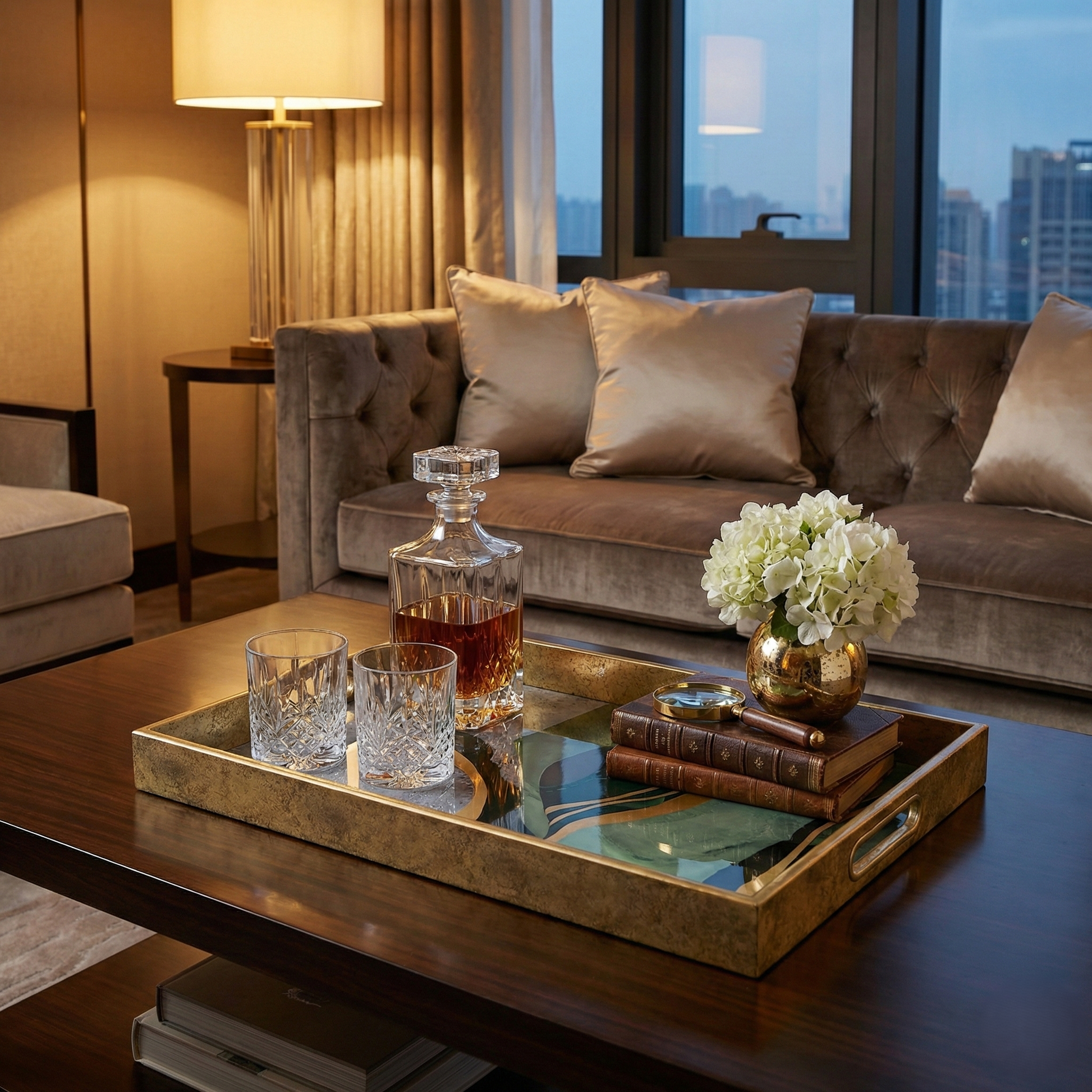 Het IvoQ Dienblad Marmerlook Groen Goud is een veelzijdig dienblad dat geschikt is voor verschillende toepassingen in huis. Het dienblad heeft een marmeren look en een goudkleurige rand, wat het een elegante uitstraling geeft.