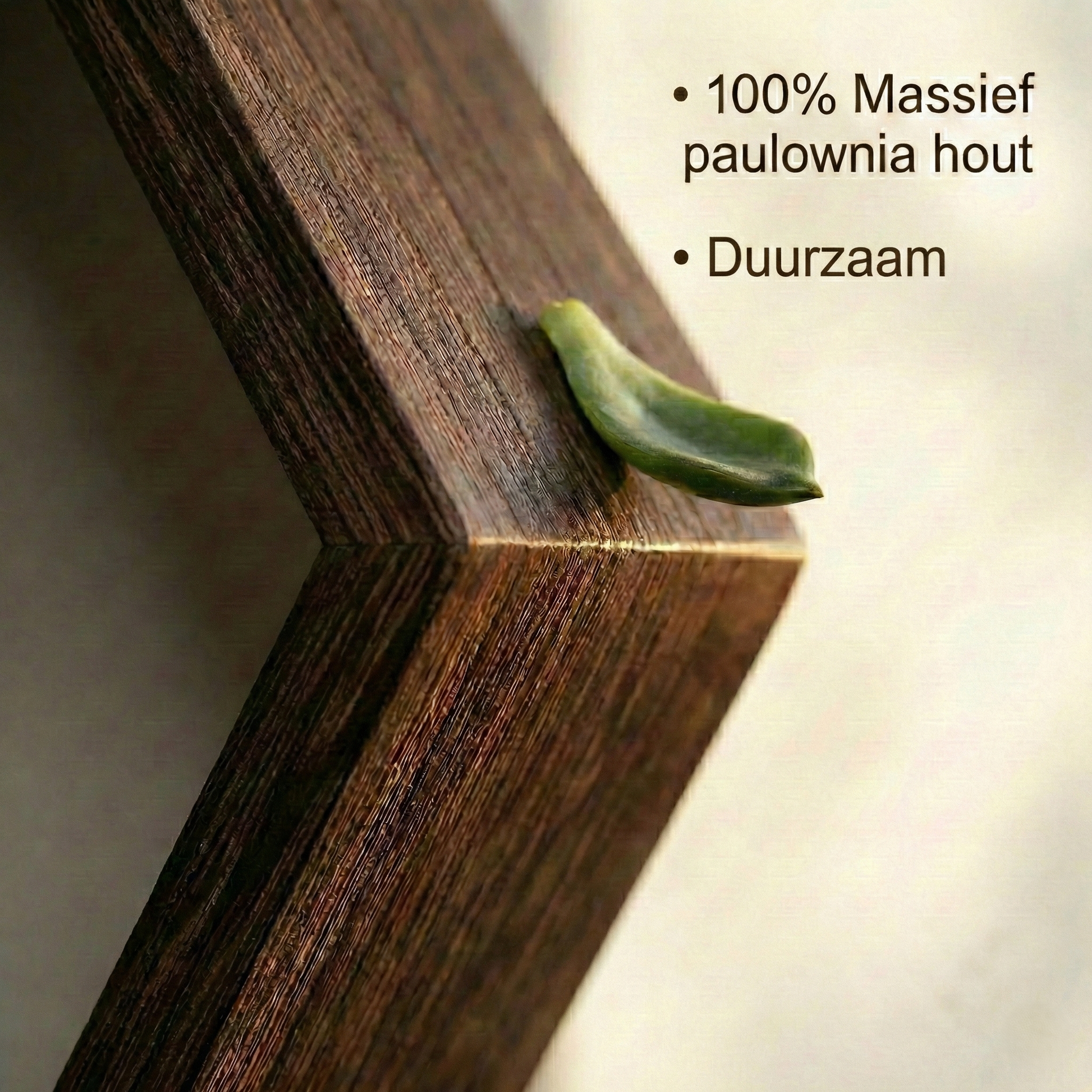 - Duurzaam FSC Paulownia Hout: Wij gebruiken 100% Paulownia hout met een FSC-keurmerk. Dit hout staat bekend als het "aluminium onder de houtsoorten": het is extreem licht van gewicht, maar oersterk en trekt niet krom.